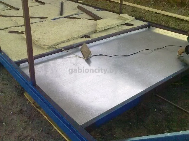 - Дно бытовки подшивается оцинкованным листом