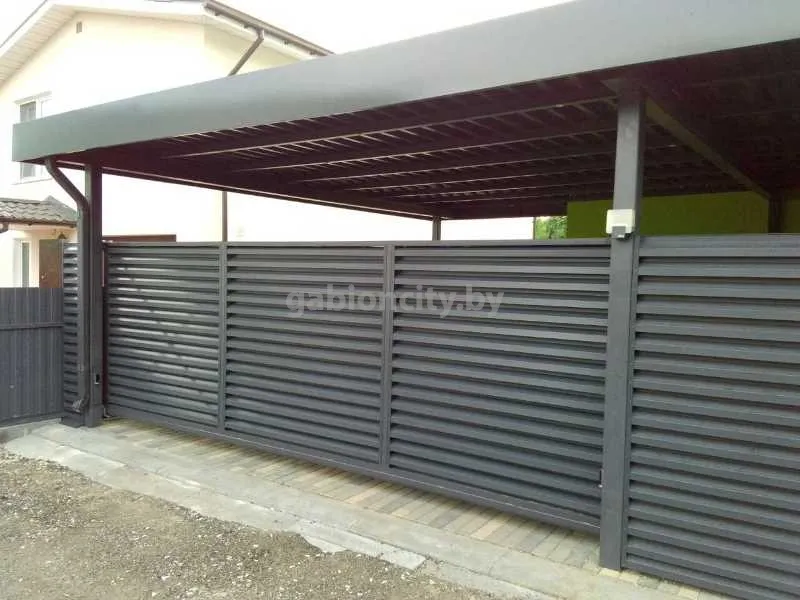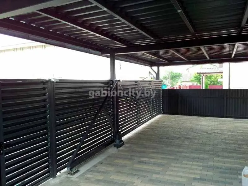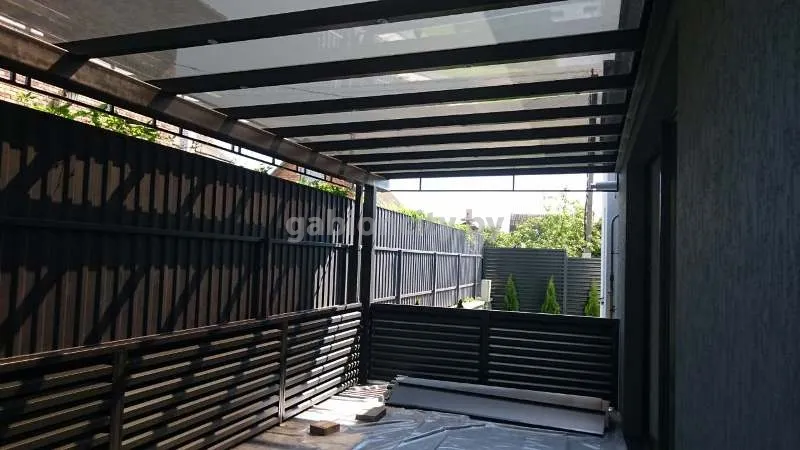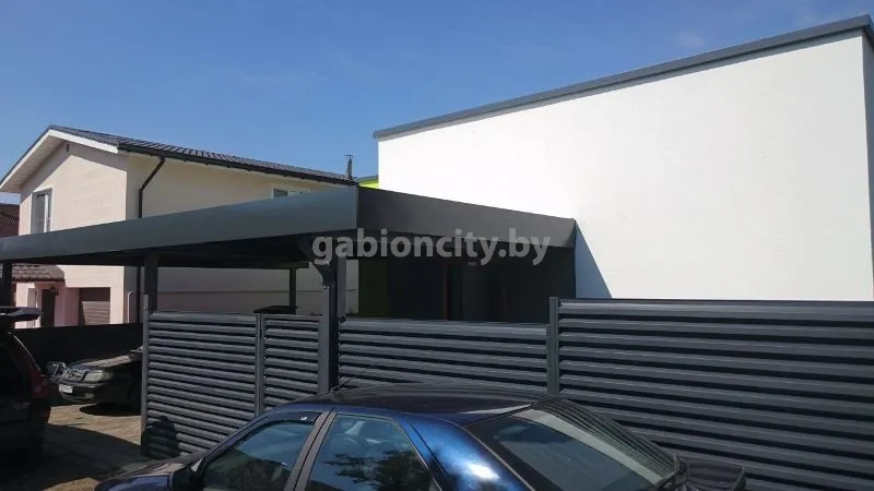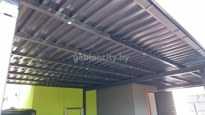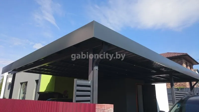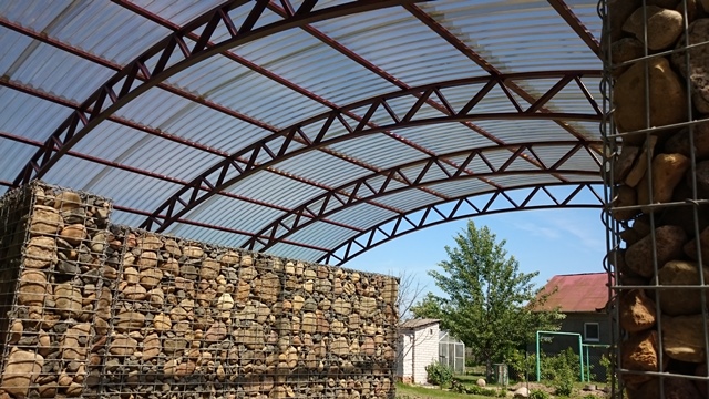 Навесы для машин из поликарбоната и габионов
