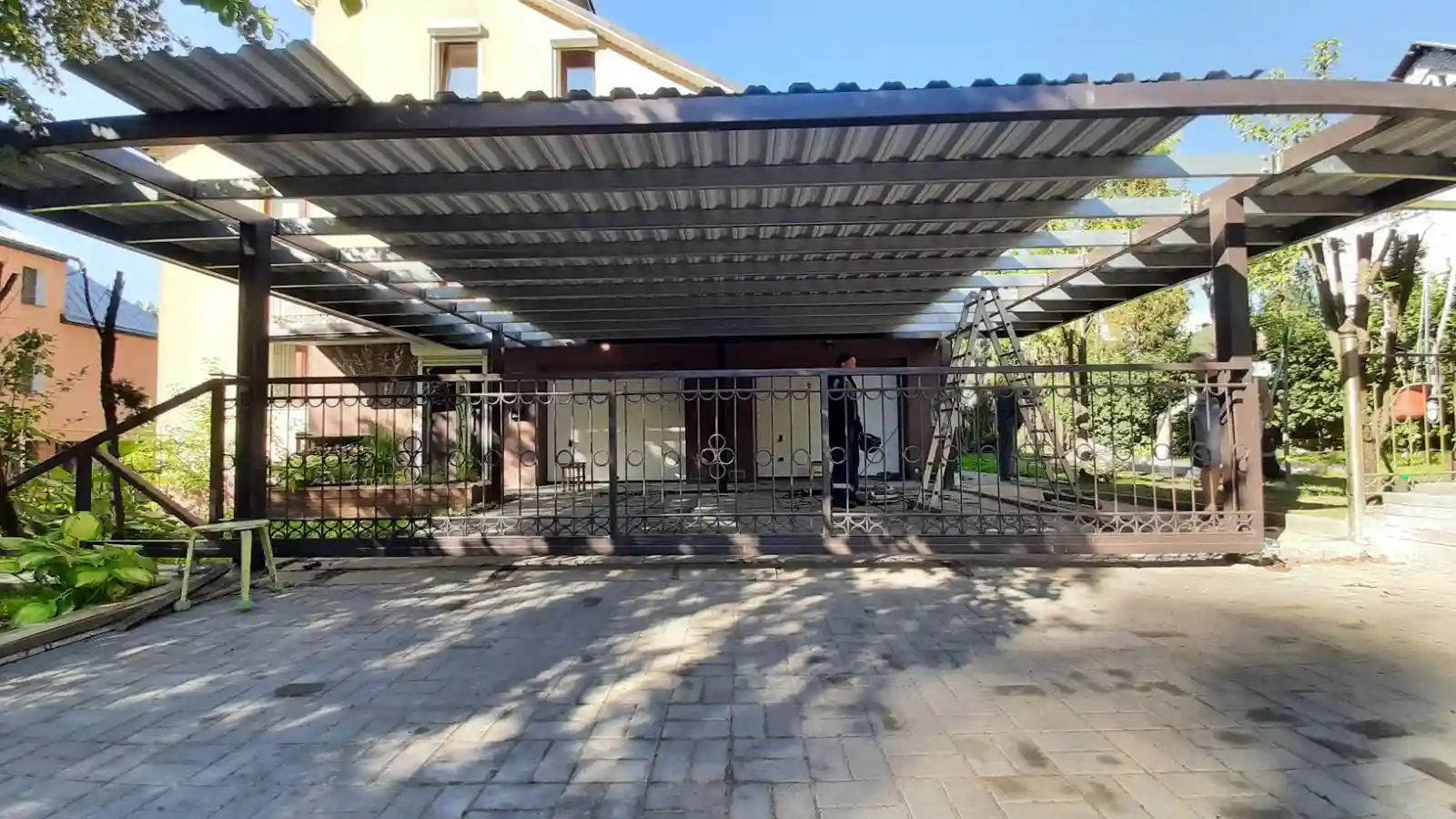 Установка навеса для автомобиля