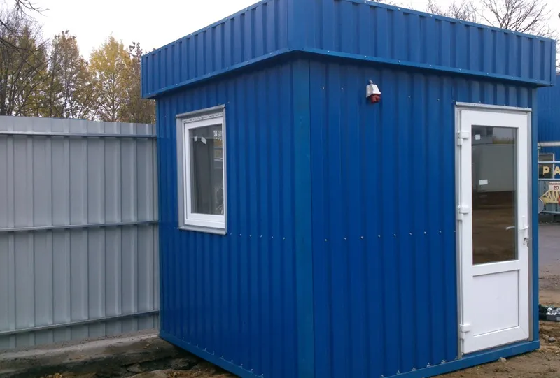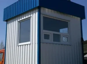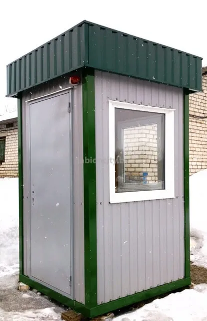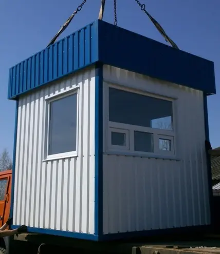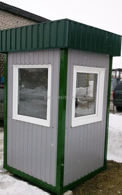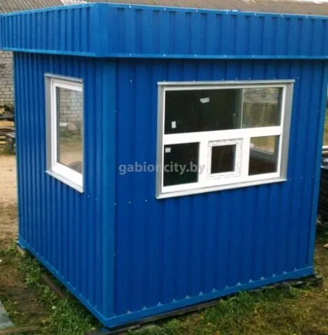 Наша компания изготавливает посты охраны любого размера и различной комплектации под заказ. Внутренняя отделка может быть выполнена из разных материалов, по выбору заказчика. Цвет профнастила для внешней отделки, также, оговаривается с заказчиком.