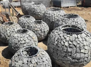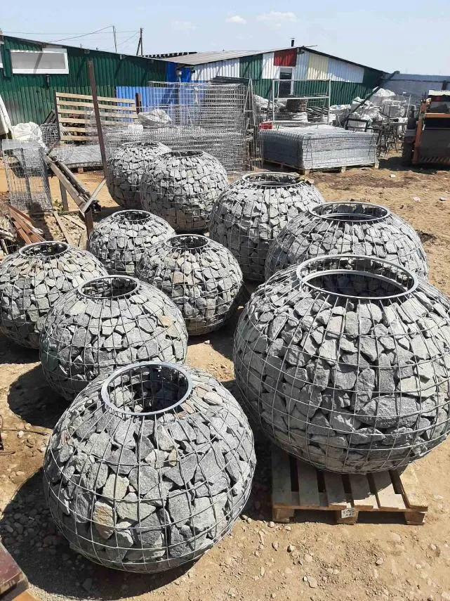 Мы изготавливаем уличные вазоны, цветочницы из габионов различных размеров, которые выглядят очень красиво и естественно в любое время года. Натуральный камень, которым заполнен вазон, великолепно сочетается с зеленью и цветами. Выбор камня для заполнения также весьма разнообразен и по цвету, и по форме.