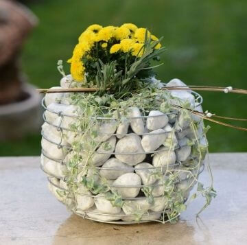 Цветочницы из камня и сетки