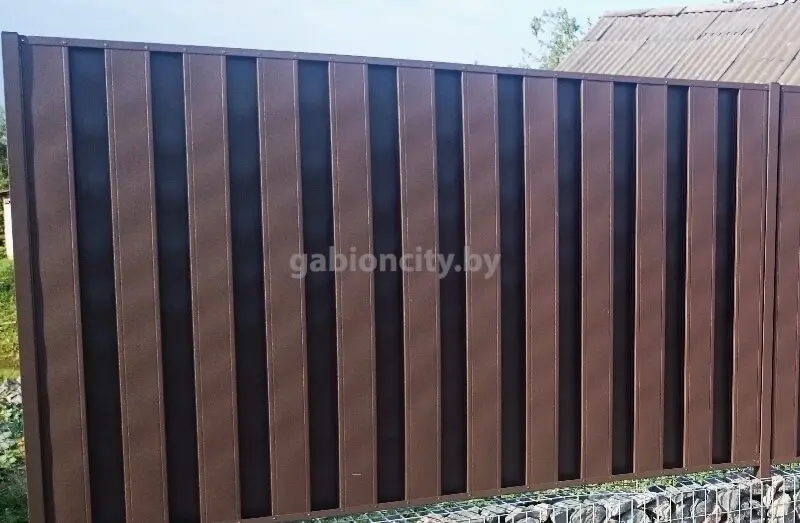 • Вертикальный штакетник — сталь толщиной 0,45 мм, оцинкованная, с полимерным покрытием;